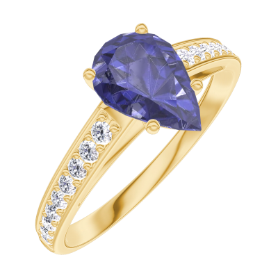 « L'ATELIER » Nº166405Bague Or jaune 18 carats - Saphir bleu Poire 0.7 carat - Sertissage Diamant