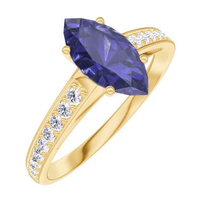 « L'ATELIER » Nº166505Bague Or jaune 18 carats - Saphir bleu Marquise 0.7 carat - Sertissage Diamant