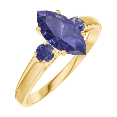 « L'ATELIER » Nº166562Bague Or jaune 9 carats - Saphir bleu Marquise 0.7 carat - Pierres de côté Saphir bleu