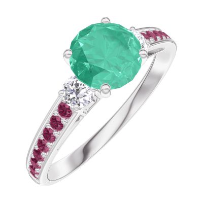 « L'ATELIER » Nº166632Bague Or blanc 9 carats - Émeraude Rond 0.7 carat - Pierres de côté Diamant - Sertissage Rubis 4.9 (7)