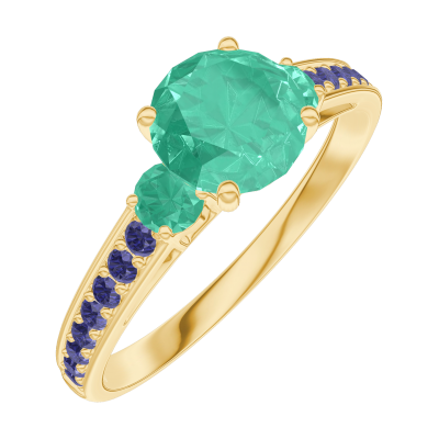 « L'ATELIER » Nº166694Bague Or jaune 9 carats - Émeraude Rond 0.7 carat - Pierres de côté Émeraude - Sertissage Saphir bleu 5 (6)