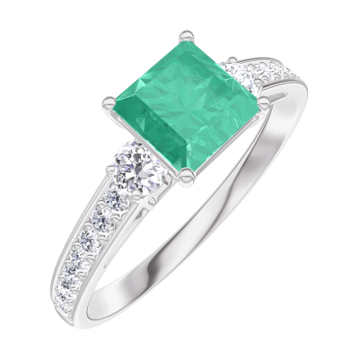 « L'ATELIER » Nº 166728Bague Or blanc 9 carats - Émeraude Princesse 0.7 carat - Pierres de côté Diamant - Sertissage Diamant