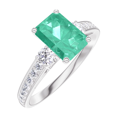 « L'ATELIER » Nº 166827Bague Or blanc 18 carats - Émeraude Rectangle 0.7 carat - Pierres de côté Diamant - Sertissage Diamant