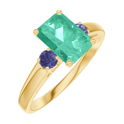 « L'ATELIER » Nº166862Bague Or jaune 9 carats - Émeraude Rectangle 0.7 carat - Pierres de côté Saphir bleu