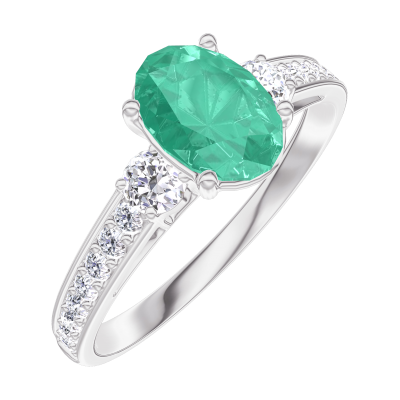 « L'ATELIER » Nº 166928Bague Or blanc 9 carats - Émeraude Ovale 0.7 carat - Pierres de côté Diamant - Sertissage Diamant