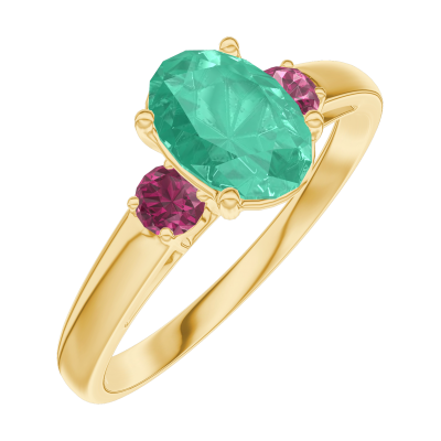 « L'ATELIER » Nº166942Bague Or jaune 9 carats - Émeraude Ovale 0.7 carat - Pierres de côté Rubis