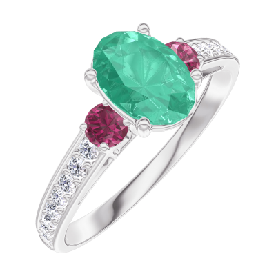 « L'ATELIER » Nº166947Bague Or blanc 18 carats - Émeraude Ovale 0.7 carat - Pierres de côté Rubis - Sertissage Diamant