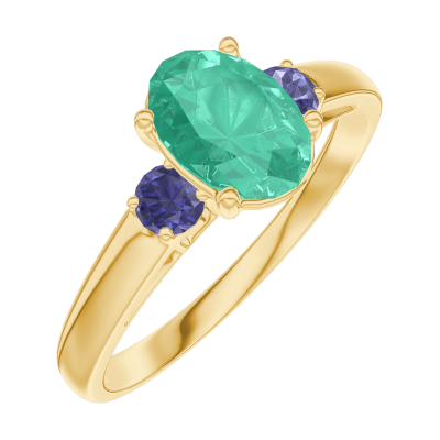 « L'ATELIER » Nº166962Bague Or jaune 9 carats - Émeraude Ovale 0.7 carat - Pierres de côté Saphir bleu
