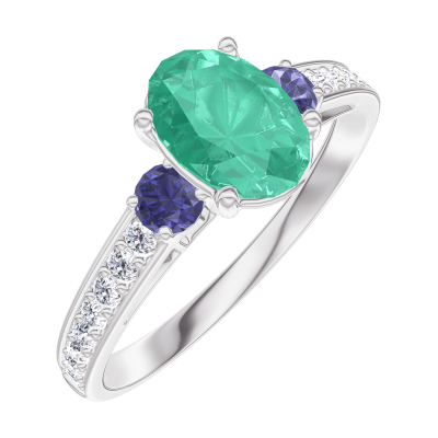 « L'ATELIER » Nº166967Bague Or blanc 18 carats - Émeraude Ovale 0.7 carat - Pierres de côté Saphir bleu - Sertissage Diamant