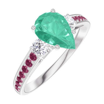 « L'ATELIER » Nº167032Bague Or blanc 9 carats - Émeraude Poire 0.7 carat - Pierres de côté Diamant - Sertissage Rubis