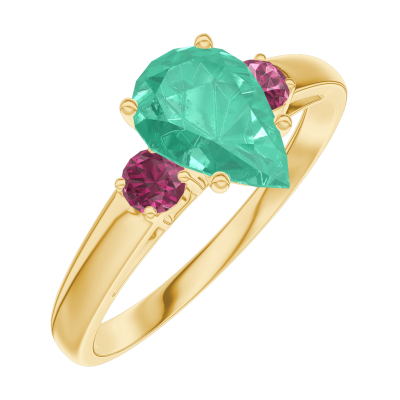 « L'ATELIER » Nº167042Bague Or jaune 9 carats - Émeraude Poire 0.7 carat - Pierres de côté Rubis