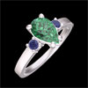 « L'ATELIER » Nº167063Bague Or blanc 18 carats - Émeraude Poire 0.7 carat - Pierres de côté Saphir bleu