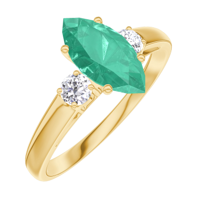 « L'ATELIER » Nº 167121Bague Or jaune 18 carats - Émeraude Marquise 0.7 carat - Pierres de côté Diamant