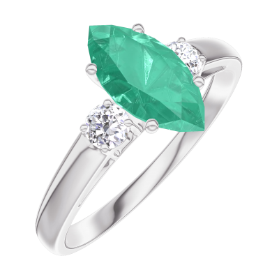 « L'ATELIER » Nº167123Bague Or blanc 18 carats - Émeraude Marquise 0.7 carat - Pierres de côté Diamant