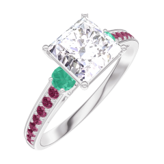 Pourquoi nous faire confiance ? « L'ATELIER » Nº 167392 Bague Or blanc 9 carats - Diamant Princesse 1 carat - Pierres de côté Émeraude - Sertissage Rubis