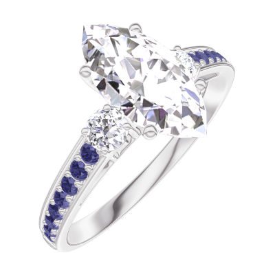 « L'ATELIER » Nº167736Bague Or blanc 9 carats - Diamant Marquise 1 carat - Pierres de côté Diamant - Sertissage Saphir bleu