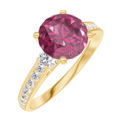 « L'ATELIER » Nº167826Bague Or jaune 9 carats - Rubis Rond 1 carat - Pierres de côté Diamant - Sertissage Diamant 4.7 (11)