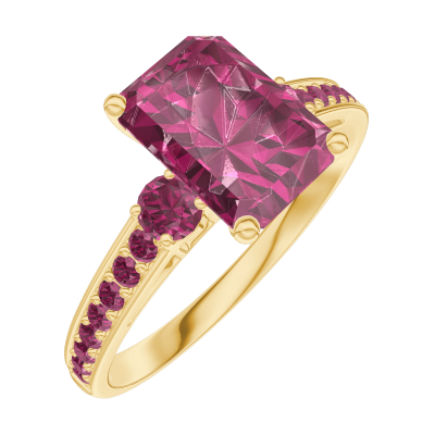 « L'ATELIER » Nº168050Bague Or jaune 9 carats - Rubis Rectangle 1 carat - Pierres de côté Rubis - Sertissage Rubis 4.6