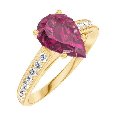 « L'ATELIER » Nº 168206Bague Or jaune 9 carats - Rubis Poire 1 carat - Sertissage Diamant
