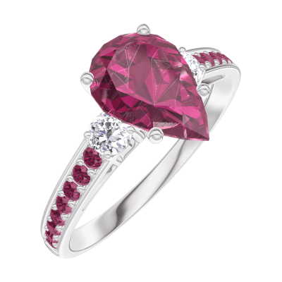 « L'ATELIER » Nº 168231Bague Or blanc 18 carats - Rubis Poire 1 carat - Pierres de côté Diamant - Sertissage Rubis