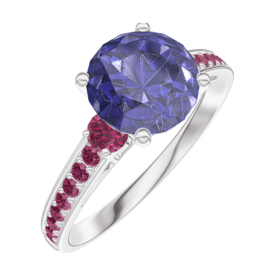 « L'ATELIER » Nº168451Bague Or blanc 18 carats - Saphir bleu Rond 1 carat - Pierres de côté Rubis - Sertissage Rubis 4.8 (14)