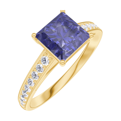 « L'ATELIER » Nº 168506Bague Or jaune 9 carats - Saphir bleu Princesse 1 carat - Sertissage Diamant