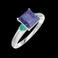 Bague Or blanc 9 carats - Saphir bleu Princesse 1 carat - Pierres de côté Émeraude