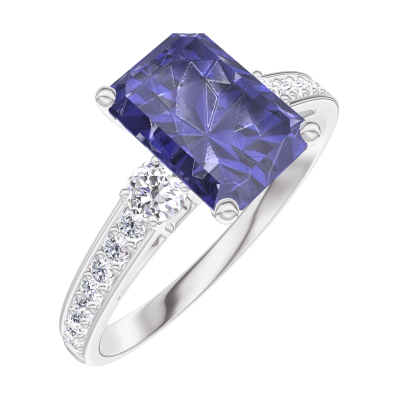 « L'ATELIER » Nº 168628Bague Or blanc 9 carats - Saphir bleu Rectangle 1 carat - Pierres de côté Diamant - Sertissage Diamant 4.6