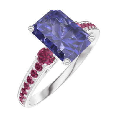 « L'ATELIER » Nº168651Bague Or blanc 18 carats - Saphir bleu Rectangle 1 carat - Pierres de côté Rubis - Sertissage Rubis 4.6 (5)