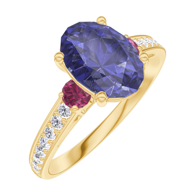 « L'ATELIER » Nº168746Bague Or jaune 9 carats - Saphir bleu Ovale 1 carat - Pierres de côté Rubis - Sertissage Diamant 4.7 (9)