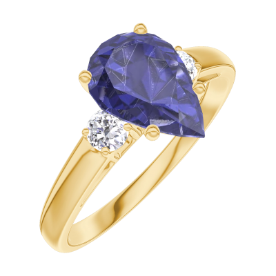 « L'ATELIER » Nº168822Bague Or jaune 9 carats - Saphir bleu Poire 1 carat - Pierres de côté Diamant