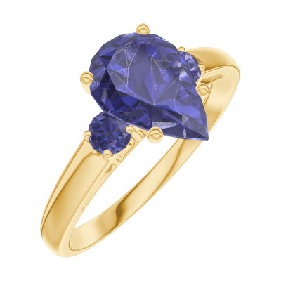 « L'ATELIER » Nº168862Bague Or jaune 9 carats - Saphir bleu Poire 1 carat - Pierres de côté Saphir bleu