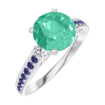 « L'ATELIER » Nº 169036Bague Or blanc 9 carats - Émeraude Rond 1 carat - Pierres de côté Diamant - Sertissage Saphir bleu 4.8 (14)