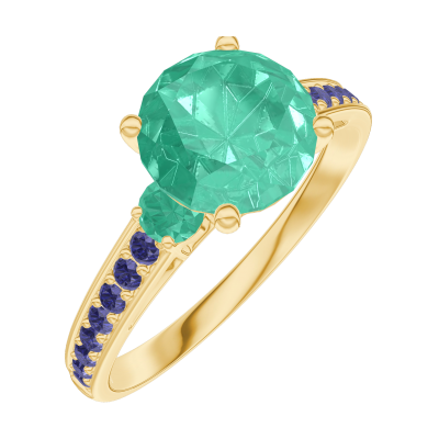 « L'ATELIER » Nº169094Bague Or jaune 9 carats - Émeraude Rond 1 carat - Pierres de côté Émeraude - Sertissage Saphir bleu 4.7 (11)