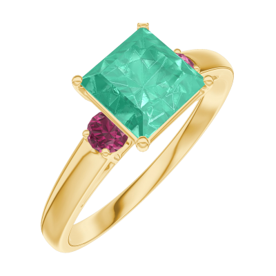 « L'ATELIER » Nº169142Bague Or jaune 9 carats - Émeraude Princesse 1 carat - Pierres de côté Rubis