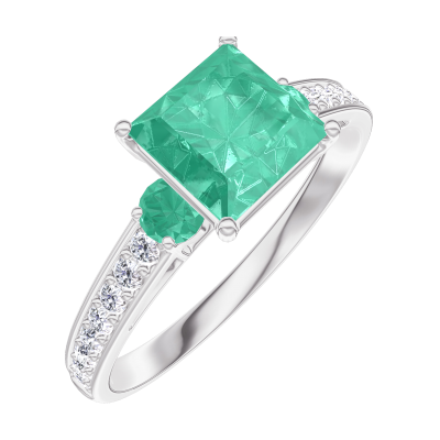 « L'ATELIER » Nº169188Bague Or blanc 9 carats - Émeraude Princesse 1 carat - Pierres de côté Émeraude - Sertissage Diamant