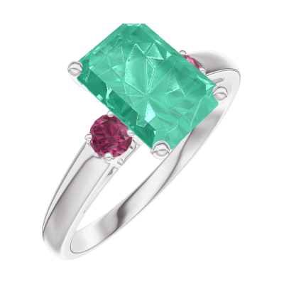 « L'ATELIER » Nº169244Bague Or blanc 9 carats - Émeraude Rectangle 1 carat - Pierres de côté Rubis 4.6
