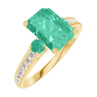 « L'ATELIER » Nº169286Bague Or jaune 9 carats - Émeraude Rectangle 1 carat - Pierres de côté Émeraude - Sertissage Diamant 4.6