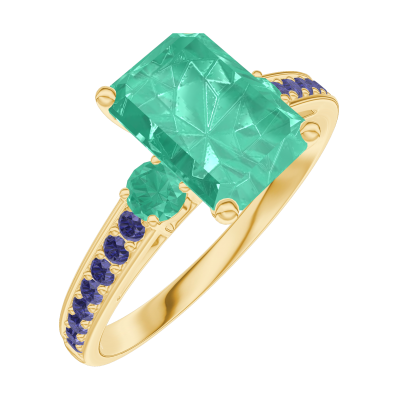 « L'ATELIER » Nº169294Bague Or jaune 9 carats - Émeraude Rectangle 1 carat - Pierres de côté Émeraude - Sertissage Saphir bleu 4.6 (5)