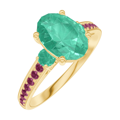 « L'ATELIER » Nº 169390Bague Or jaune 9 carats - Émeraude Ovale 1 carat - Pierres de côté Émeraude - Sertissage Rubis 4.7 (9)
