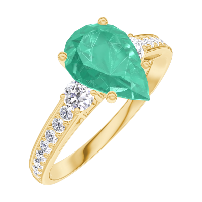 « L'ATELIER » Nº 169426Bague Or jaune 9 carats - Émeraude Poire 1 carat - Pierres de côté Diamant - Sertissage Diamant