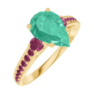 « L'ATELIER » Nº169449Bague Or jaune 18 carats - Émeraude Poire 1 carat - Pierres de côté Rubis - Sertissage Rubis