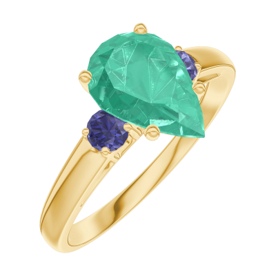 « L'ATELIER » Nº169462Bague Or jaune 9 carats - Émeraude Poire 1 carat - Pierres de côté Saphir bleu