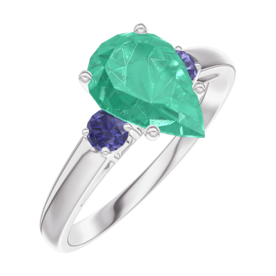 « L'ATELIER » Nº169464Bague Or blanc 9 carats - Émeraude Poire 1 carat - Pierres de côté Saphir bleu