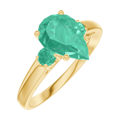 « L'ATELIER » Nº 169481Bague Or jaune 18 carats - Émeraude Poire 1 carat - Pierres de côté Émeraude