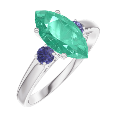 « L'ATELIER » Nº169563Bague Or blanc 18 carats - Émeraude Marquise 1 carat - Pierres de côté Saphir bleu
