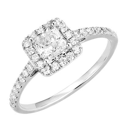 « L'ATELIER » Nº170056Bague Or blanc 9 carats - Diamant Princesse 0.5 carat - Halo Diamant - Sertissage Diamant 4.1 (10)