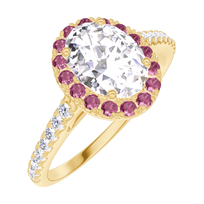 « L'ATELIER » Nº170165Bague Or jaune 18 carats - Diamant Ovale 0.5 carat - Halo Rubis - Sertissage Diamant 4.5 (12)