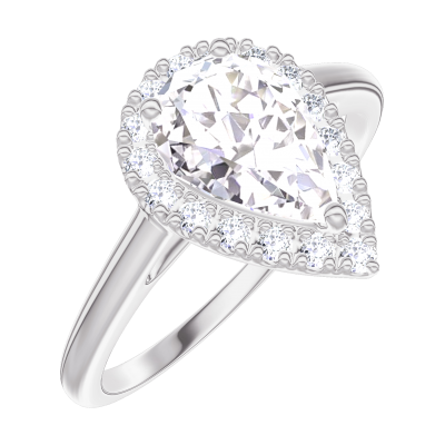 « L'ATELIER » Nº 170196Bague Or blanc 9 carats - Diamant Poire 0.5 carat - Halo Diamant 4.8 (13)