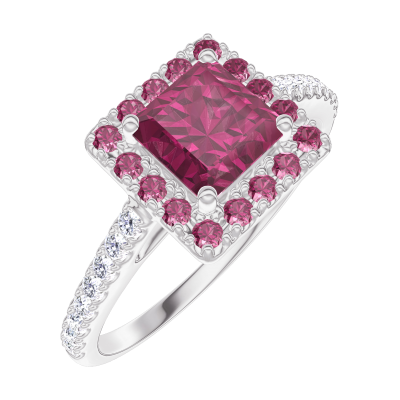 « L'ATELIER » Nº 170360Bague Or blanc 9 carats - Rubis Princesse 0.5 carat - Halo Rubis - Sertissage Diamant 4.1 (10)